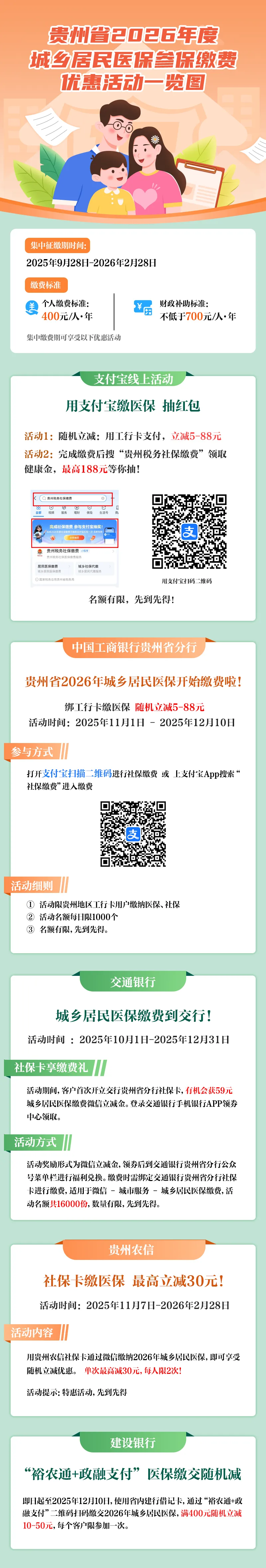 贵州省2026年度城乡居民医保参保缴费优惠活动一览图