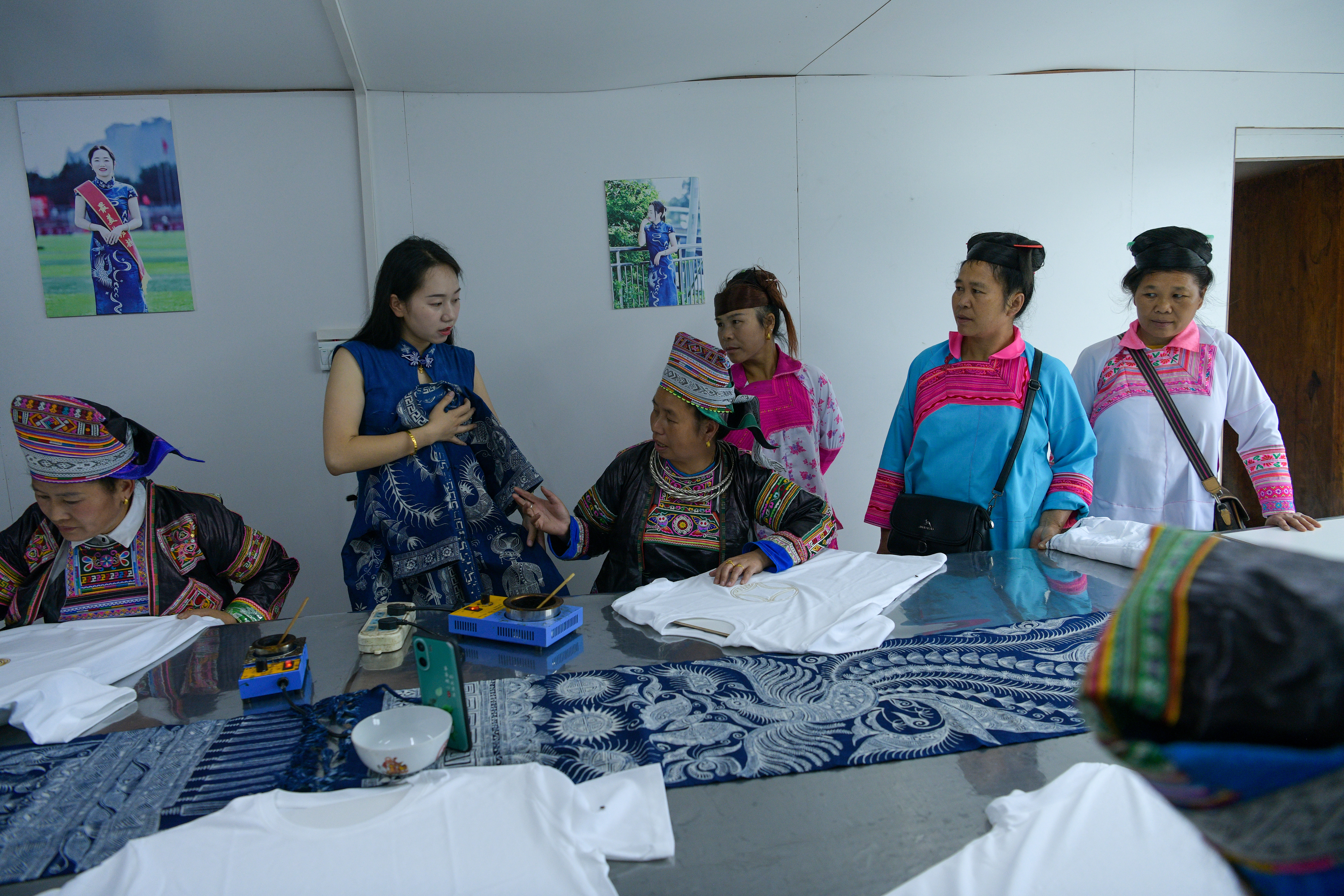 那次,他们直接带走了一万多元的蜡染作品。“通过网络,别人觉得你实在、可信,生意就这么成了。”那是她的第一个外地代理商。