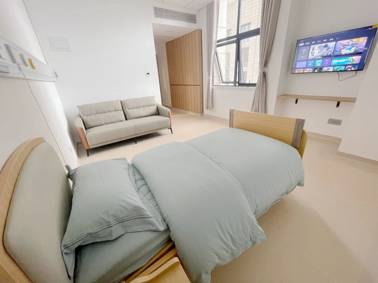 中心坐落于医院新落成投入使用的内科住院综合楼的5、6、7、11层,总规划面积约6342平方米,整体规划养老床位204张。一期运营面积达1585平方米,拟率先开放51张养老床位。
