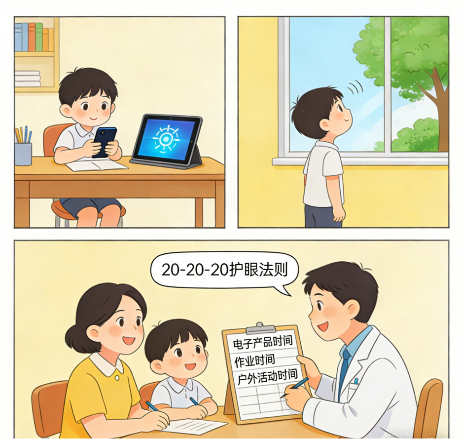 当前,电子产品已成为孩子寒假生活的重要组成部分,如何科学管控孩子的屏幕使用时间、保护视力,是家长们最关心的问题。对此,朱健华主任表示,科学用眼核心是要遵循“20-20-20”护眼法则,即每近距离用眼20分钟,就抬头看20英尺(约6米)外的物体20秒,让眼睛得到及时放松。要严格控制孩子单次使用电子产品的时长不超过20分钟,避免连续长时间用眼;使用电子产品时,屏幕亮度需与环境亮度匹配,避免强光直射屏幕或在昏暗环境下使用。