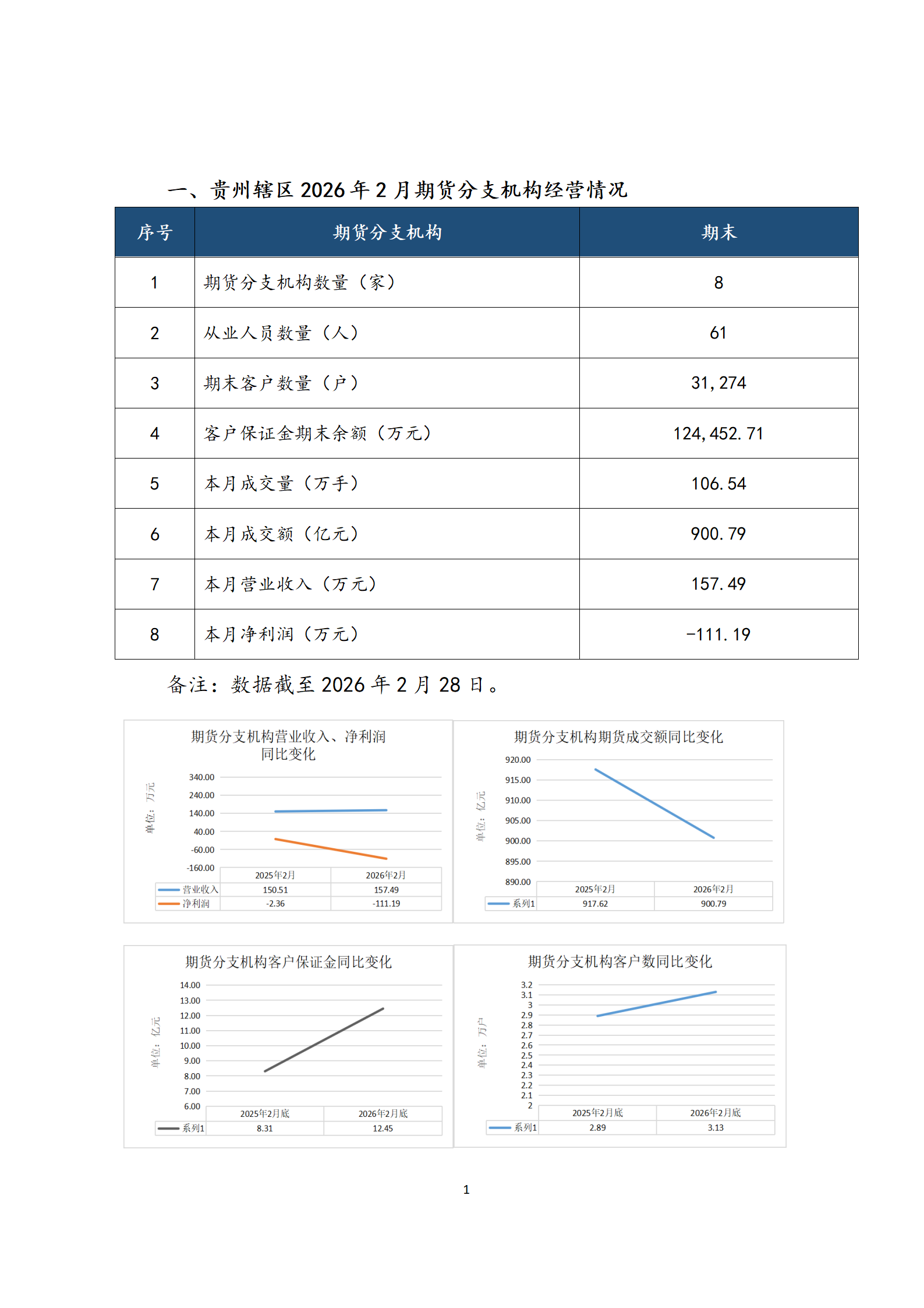 黔证资讯丨贵州资本市场月报:期货经营机构经营情况统计信息(2026年2月)