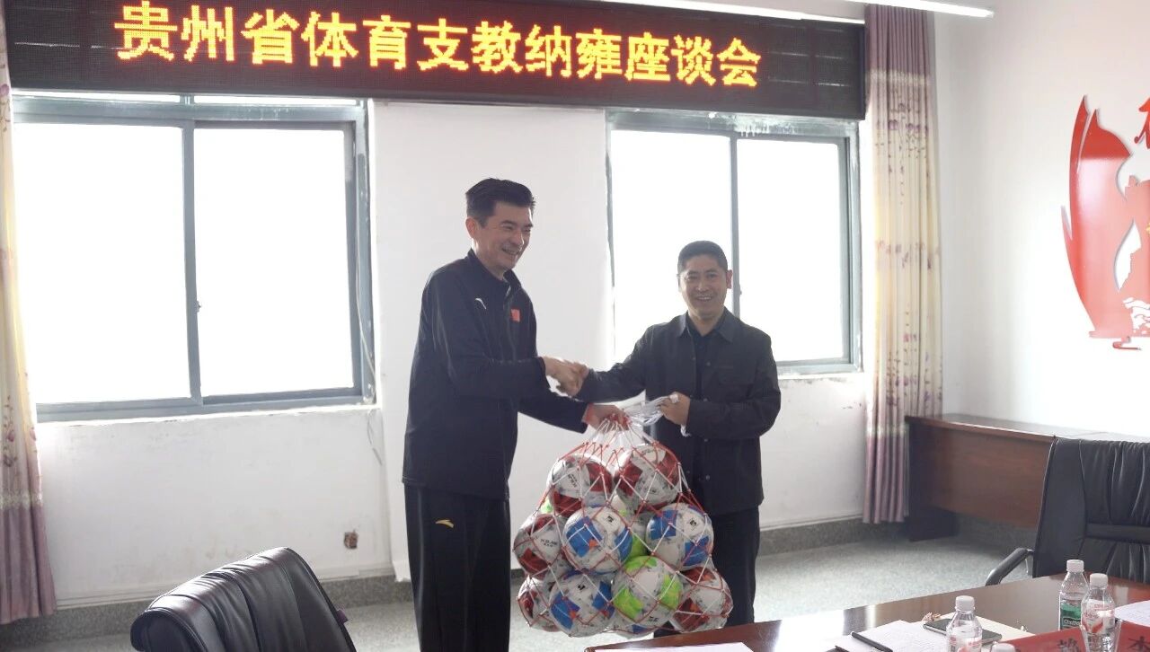 当日下午,体育支教纳雍县工作座谈会暨物资捐赠仪式在纳雍县思源中学举行。清镇体育训练基地向纳雍县体育中心捐赠了一批包括足球、标志盘、战术板等在内的体育教学物资,专项用于支持基层体育训练与改善支教工作条件。