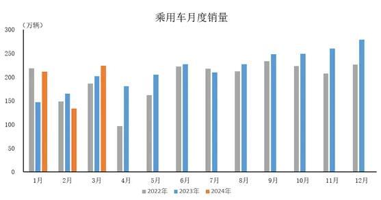 2024年1-3月,乘用车国内销量457.7万辆,同比增长6.2%。