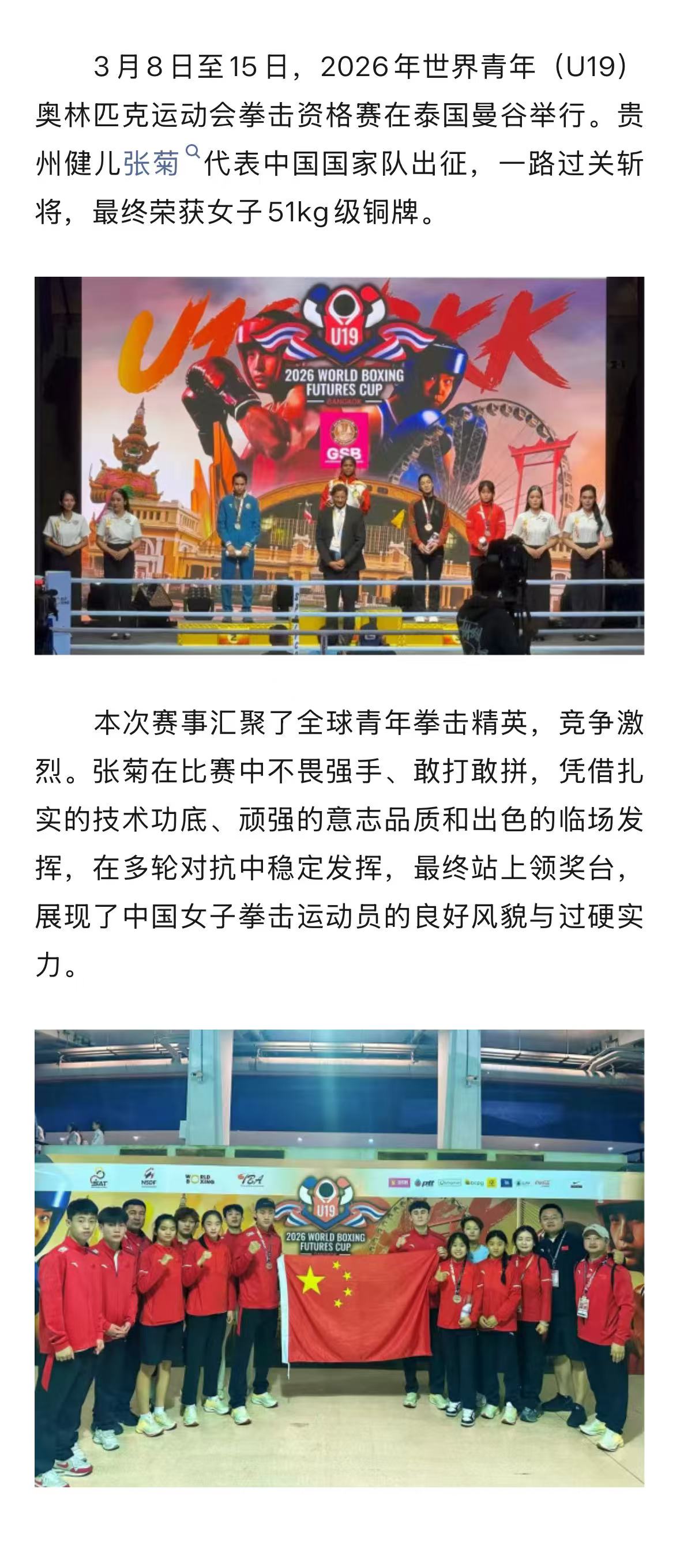 贵州健儿张菊勇夺世界青年(U19)青奥会拳击资格赛铜牌