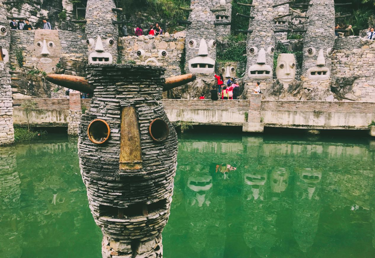 艺术家宋培伦创构的神秘石谷,图腾石雕、原始村落风,仿佛穿越古夜郎国,出片率超高,还能感受非物质文化遗产与自然的融合。