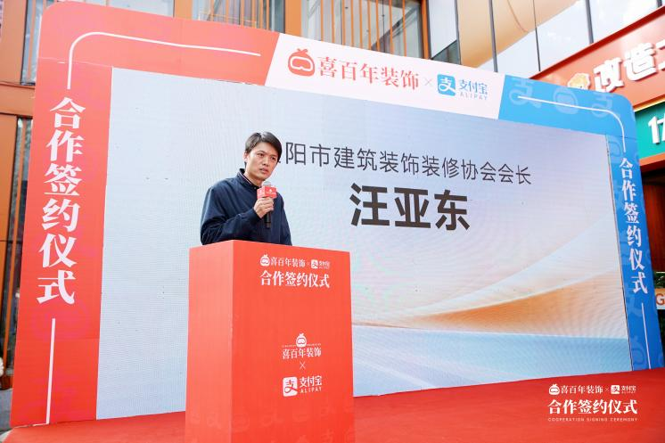 贵阳市建筑装饰装修协会会长汪亚东在随后的发言中表示:"作为地方行业协会,我们深切体会到消费者对家装资金安全的迫切需求。喜百年装饰此次与支付宝的合作,不仅为贵阳市家装行业树立了诚信经营的新典范,更重要的是通过技术创新为消费者构建了坚实的资金保障体系。这种'业主确认、节点付款'的模式,值得在全市装饰企业中推广,让筑城百姓都能享受到安心、透明的装修服务。"