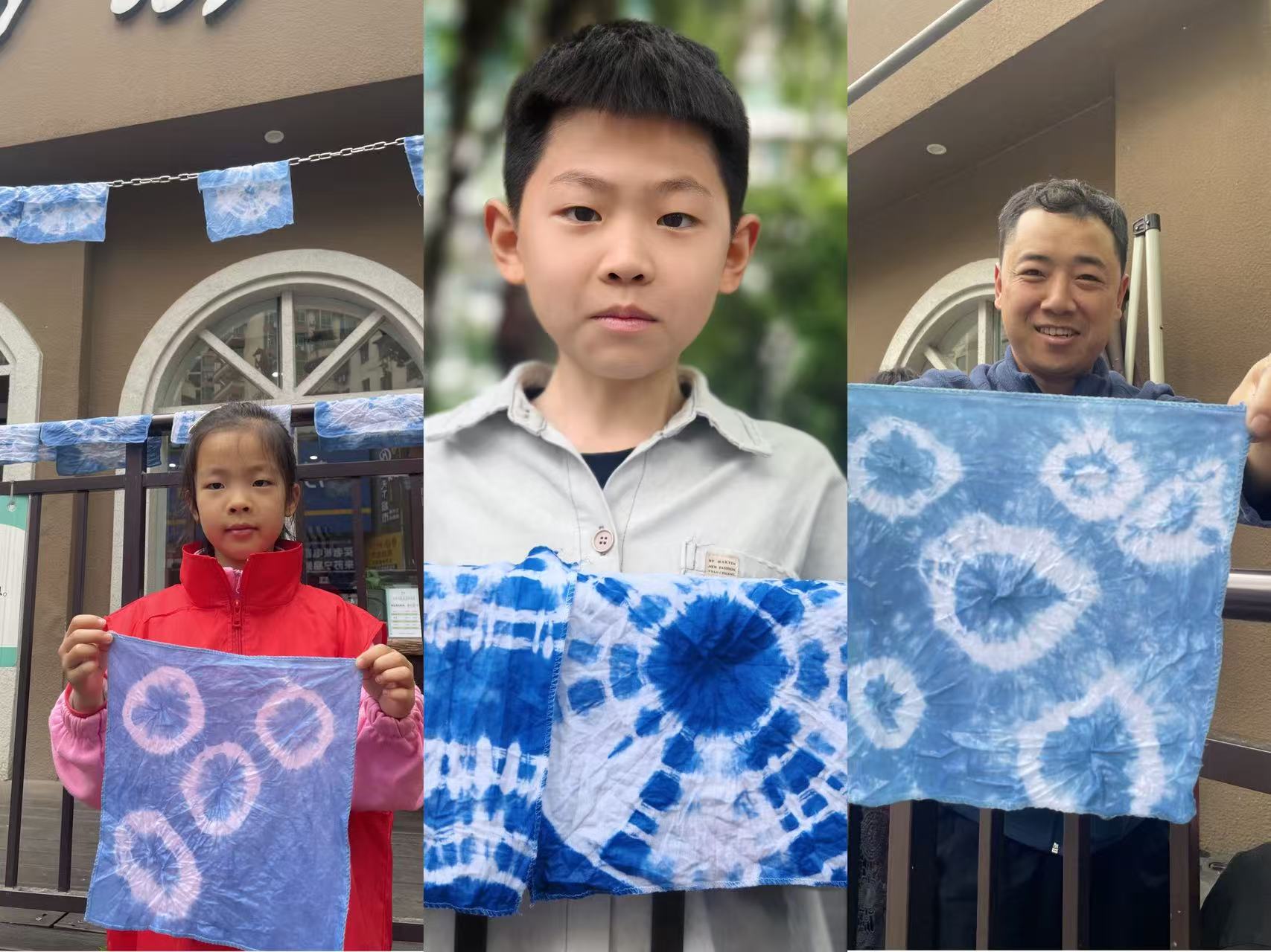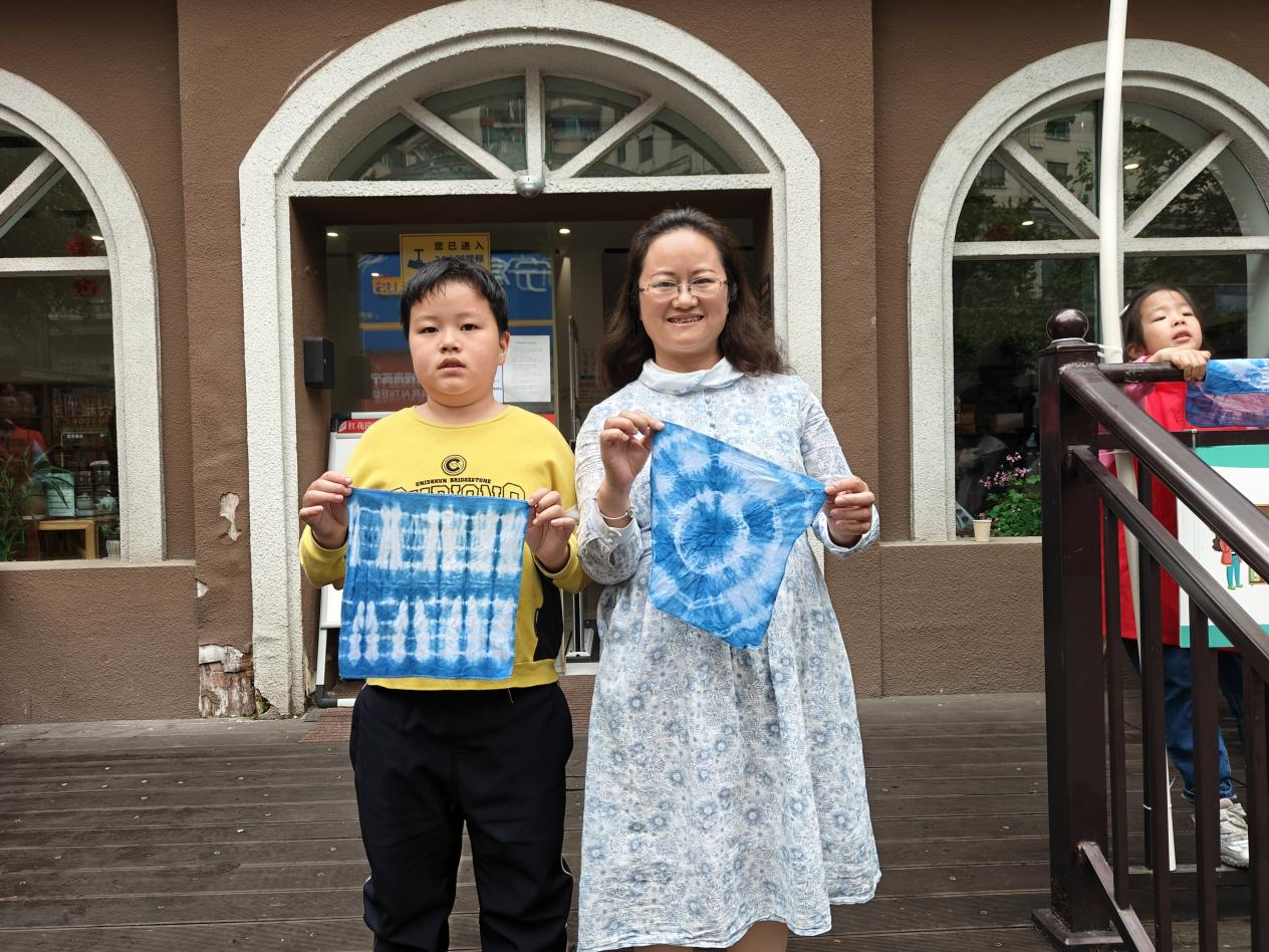 作品完成后,大家手持亲手创作的蜡染佳作合影留念,笑脸与蓝韵相映成趣,为这场文化之旅留下珍贵瞬间。