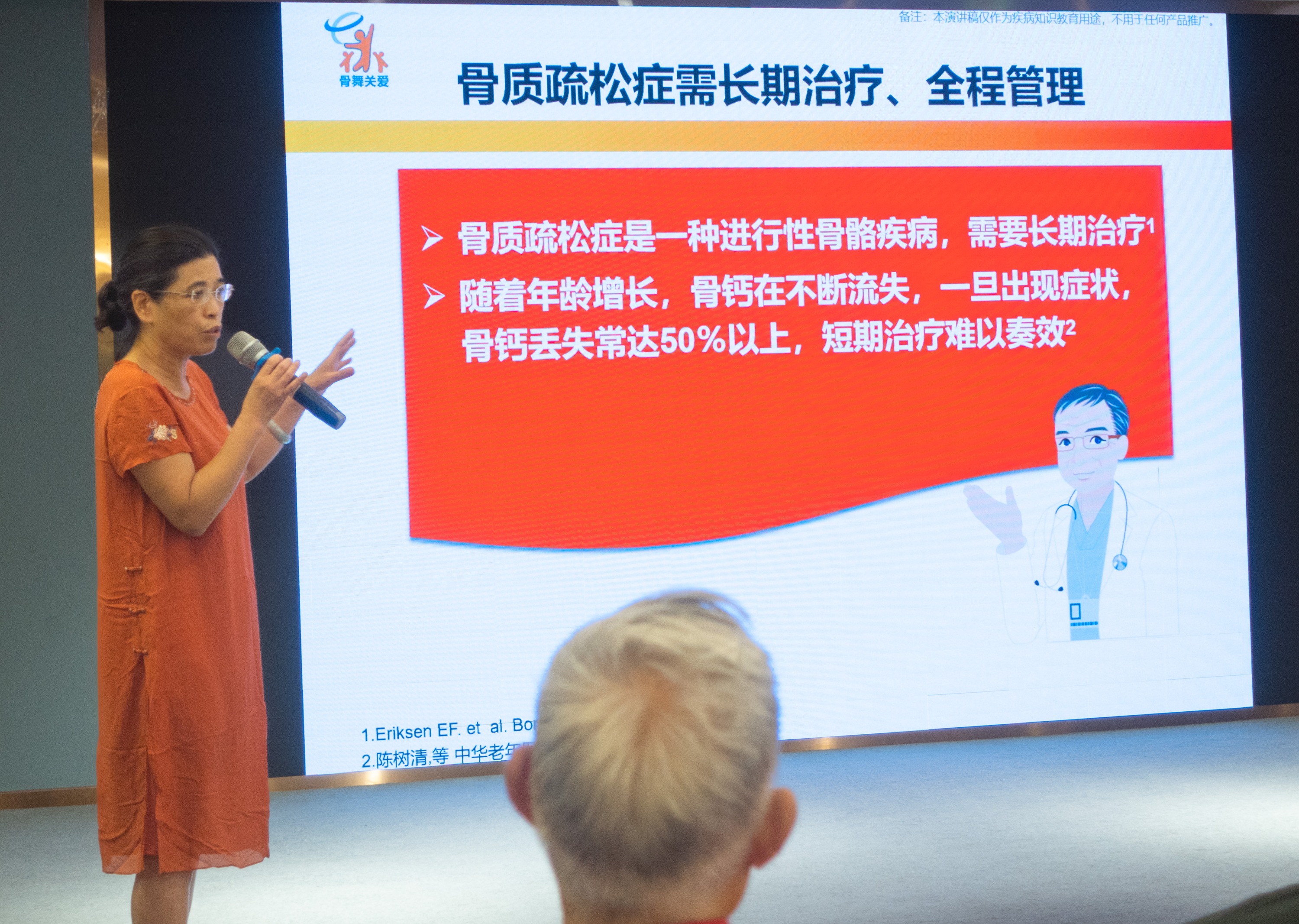 随后,贵州省骨科医院骨内科大主任宋红教授、贵州省骨科医院临床营养科主任周小萍教授向在座老兵普及了骨质疏松的相关医学常识。宋红教授指出,骨质疏松症可发生于任何年龄,但多见于绝经后女性和老年男性。目前医学界已经将防治骨质疏松症预防骨折、治疗高血脂预防心肌梗塞、治疗高血压预防中风放在同等重要的位置。骨质疏松对中老年人危害大,轻则导致腰背痛,重则致残、致死。确诊骨质疏松的患者需要尽早接受规范化治疗,同时年轻人更要重视预防骨质疏松,避免年老时遭受疾病困扰。而周小萍教授强调,除了医学上的规范治疗以外,精准营养在老年慢病康复过程中起到非常重要的作用。特别是针对吸收和消化功能比较弱的老年人,合理的营养干预可以给到身体精准补充,帮助老年病患恢复健康。