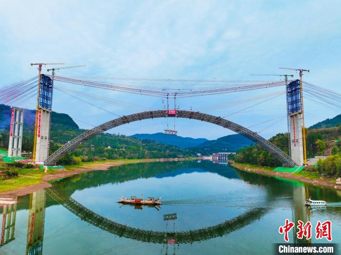 陕西镇巴至四川广安高速公路(简称镇广高速)云台通江河特大桥主拱6日顺利合龙。