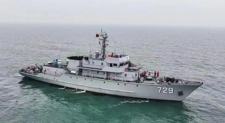 赤水舰以贵州省遵义市赤水市命名,我国自主研制的082Ⅱ型猎扫雷舰,舷号729,能够执行猎雷和遥控扫雷任务,保护航道和重要港口的航行安全,被形象地称为“开路先锋”。
