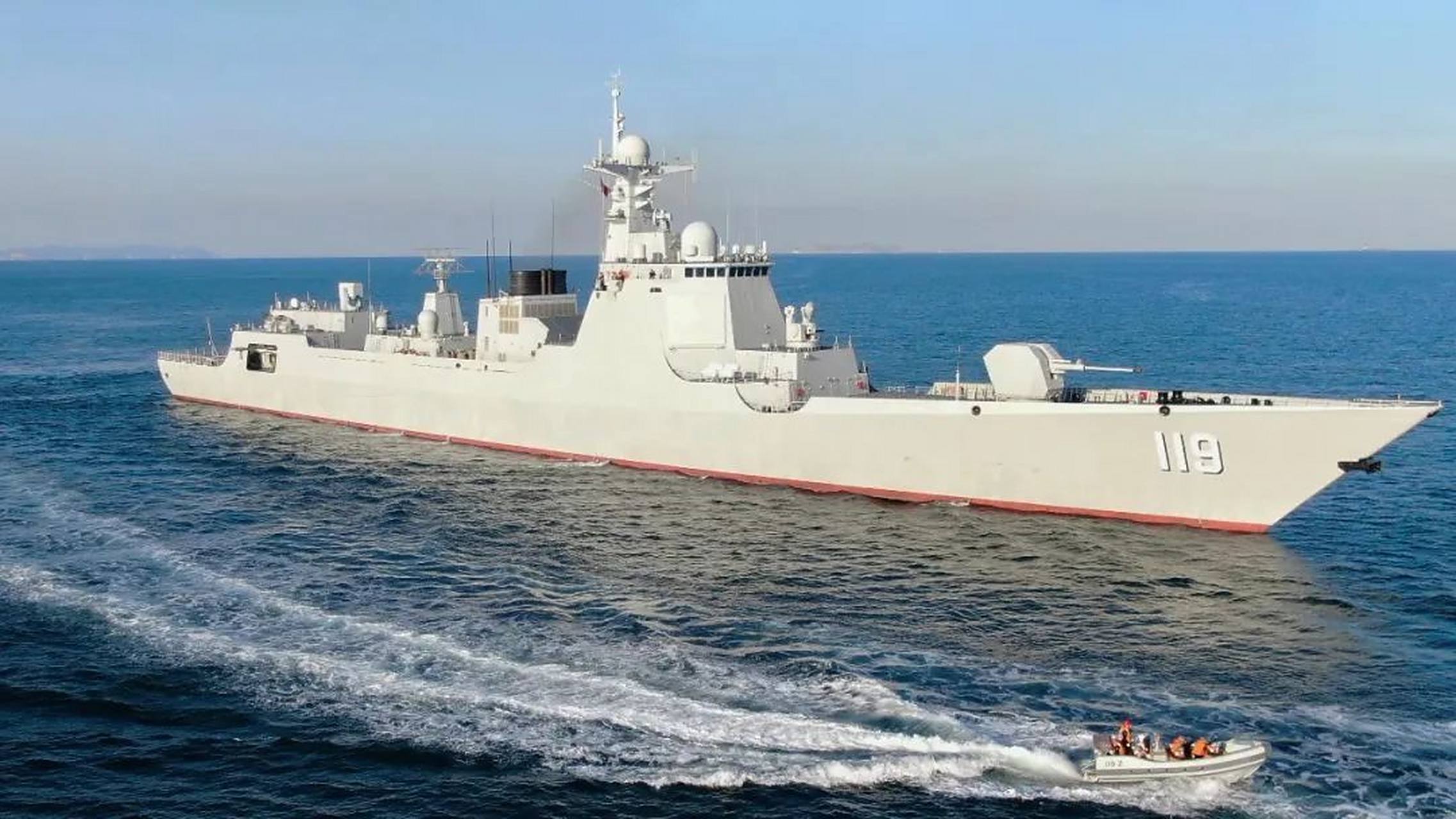 贵阳舰以贵州省省会城市贵阳命名,是我国自主研制的新型052D型导弹驱逐舰,舷号119,于2019年2月正式入列。贵阳舰被誉为“带刀护卫”和“中华神盾”,满载排水量约7000吨,设计理念先进,集成化、信息化程度高,具有较强的区域防空、对海打击和反潜能力。