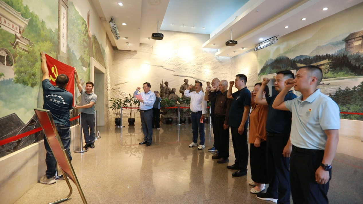 现场,贵州省酿酒工业协会理事长黄平、遵义市酒业协会会长吕云怀带领协会党员、行业专家等10余人走进红军长征过茅台陈列馆,在党旗前庄严宣誓,重温入党誓词。