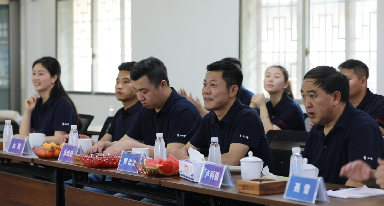 在酱九坊酒业,专家团参观考察了厂区制酒车间、制曲车间、酒库等建设情况,并与企业负责人围绕人才队伍建设、产能优化、品质管控等核心问题展开座谈交流。