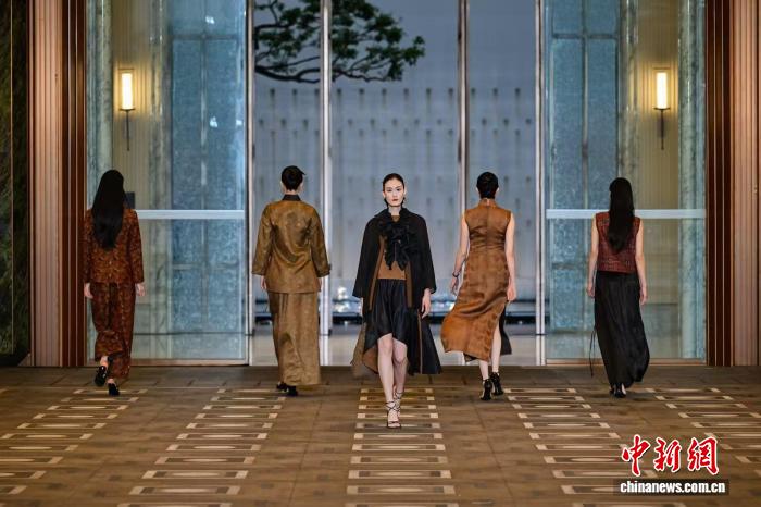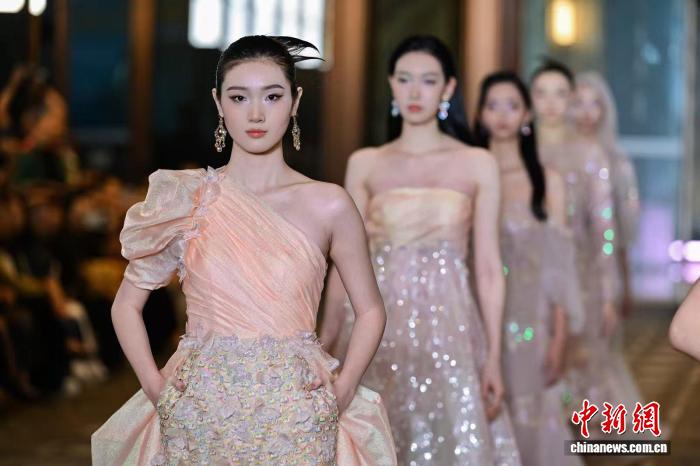其中,李小燕以香云纱为载体,融合植物染、阳光晒艺等非遗工艺与现代剪裁;严芳妮以宋锦、云锦、重磅真丝勾勒诗意东方;赵亚坤将潮绣、珠绣与科技面料创新结合,打造先锋高定。