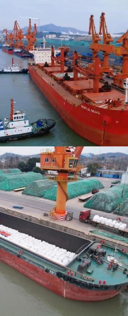 为使农资快速直达田间,中国供销集团所属中农集团优化物流模式,采用“水水联运”降本增速。今年春耕备耕期间,装载2万多吨钾肥的货轮靠泊江苏镇江港,直接中转至内贸船舶,“大船转小船、小船转货车”,全程不进堆场、零仓储占用,直奔中原腹地。(中国供销集团供图)