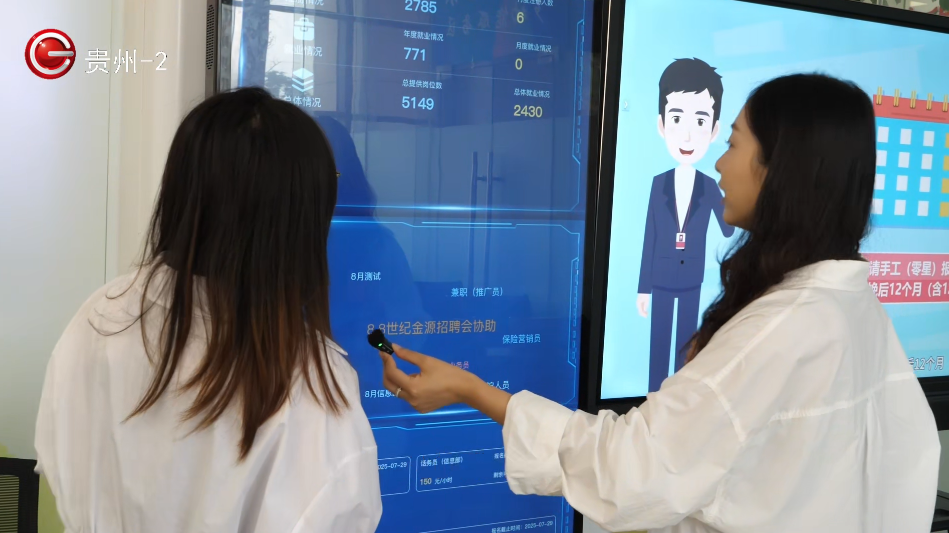 观山湖区零工市场工作人员庞嫡嫡:这块屏幕上方展示的是2025年上半年的注册和就业情况数据。而自零工市场运行以来,累计登记的岗位已有3万多个。下方实时更新各类岗位信息,比如英语老师、商务主管等,并标注岗位时间,方便求职者及时了解最新需求,避免人员已满的情况,确保信息清晰有效。