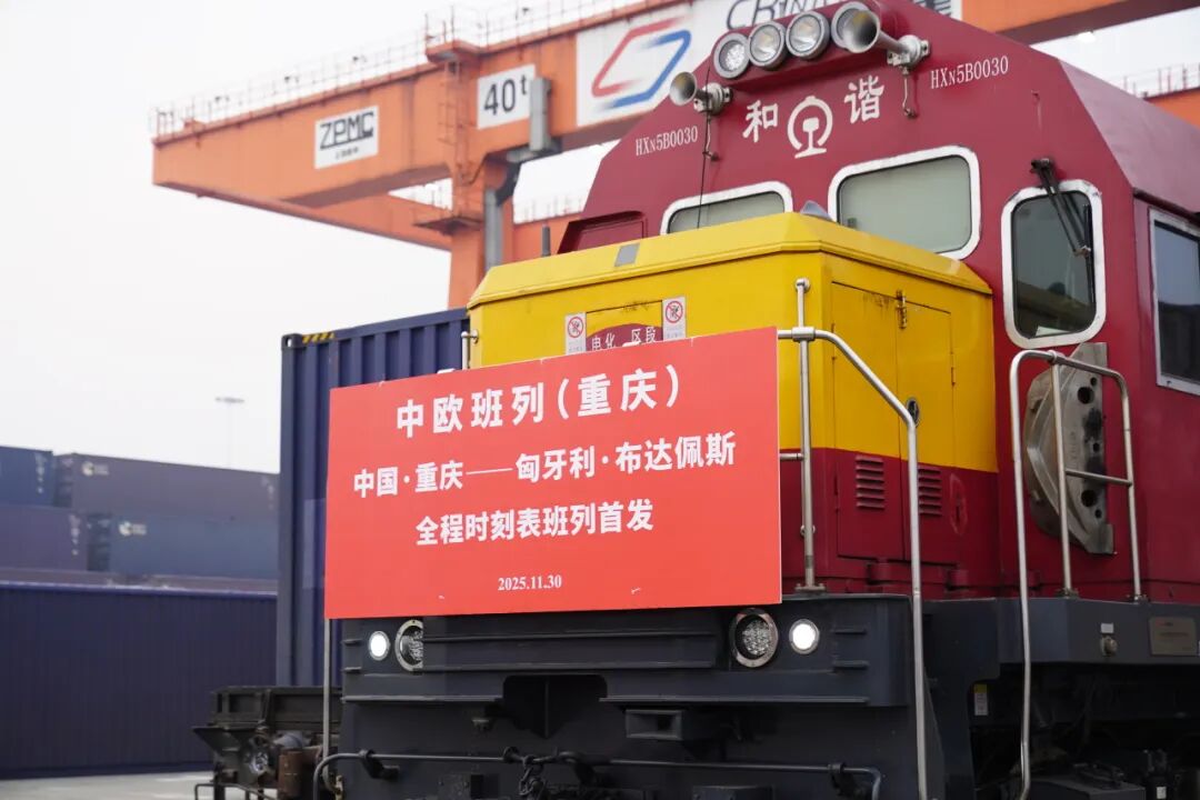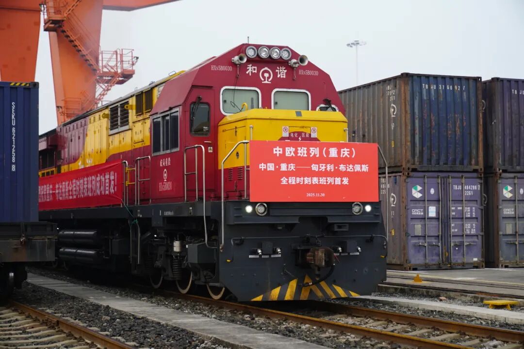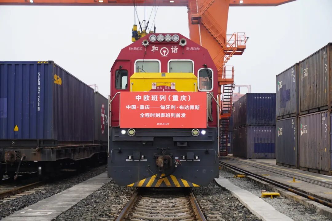 11月30日,一列满载汽摩配件、日用百货等产品的中欧班列从重庆团结村中心站鸣笛启程,驶向匈牙利首都布达佩斯,这标志着重庆至匈牙利布达佩斯全程时刻表中欧班列正式开行。