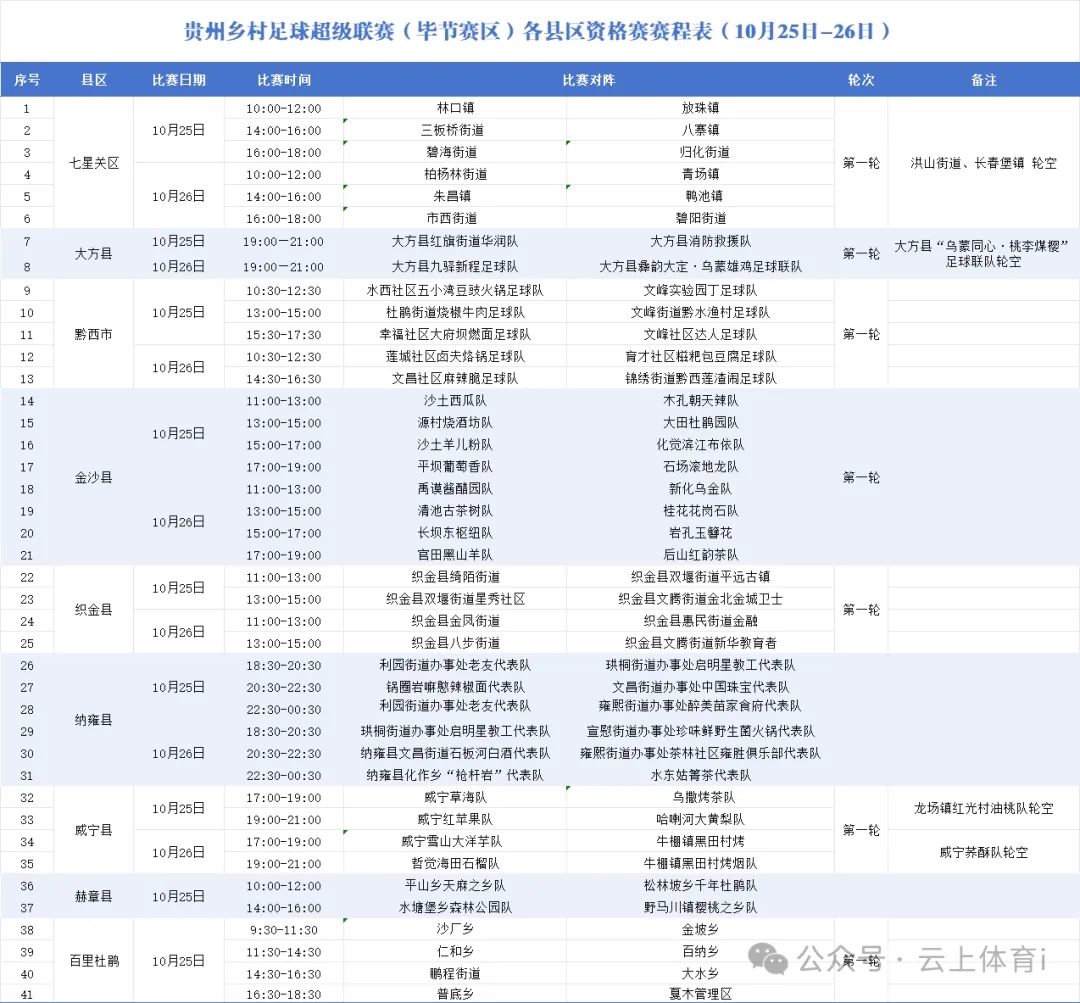 (毕节赛区)各县区资格赛赛程表