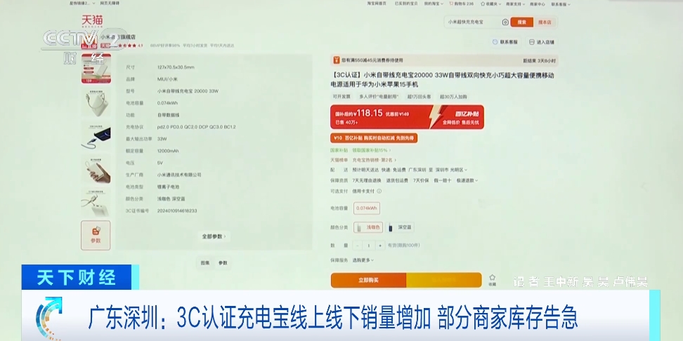 记者在几大电商平台发现,在售的充电宝产品均已带有3C认证标识,无3C认证的充电宝已经被禁止上架销售,部分商家库存告急。