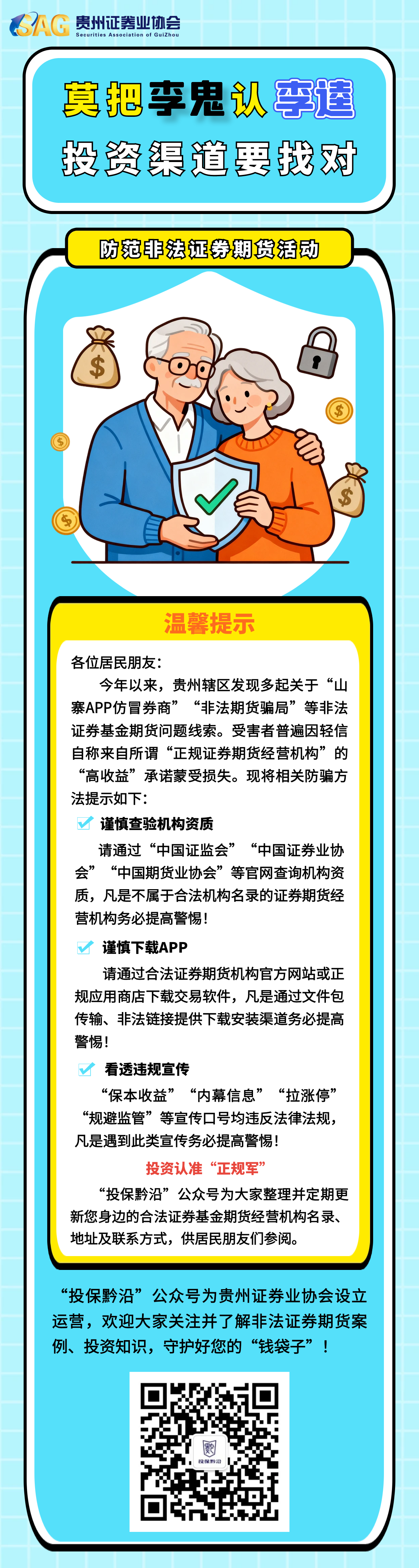 假冒证券、期货、基金公司名义实施的诈骗活动就在您的身边,擦亮眼睛多辨别。投资时,要选择合法证券基金期货经营机构,树立理性投资理念。