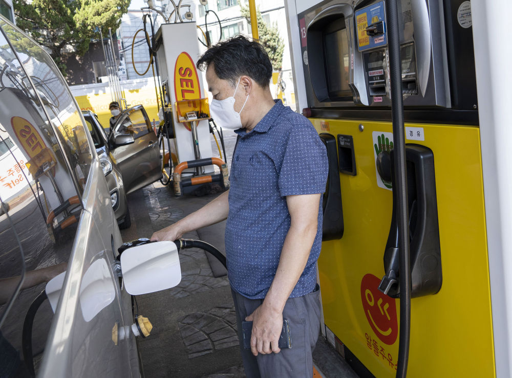 2022年5月27日,市民在韩国首尔一家自助式加油站加油。新华社发(李相浩摄)