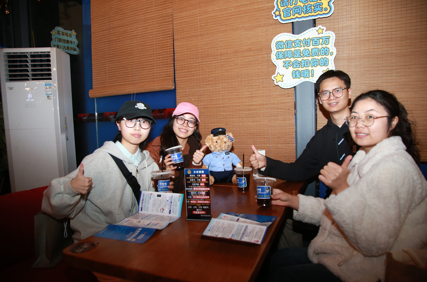在桌牌上的“十大高发诈骗类型”一目了然,咖啡杯套上的防骗口诀诙谐幽默,在大家等待取餐的片刻,这些实用的知识就能悄然入眼、自然入心。从点单到细细品味,防骗的知识如同咖啡的香气,自然地萦绕在侧,化作生活中一份温暖的守护。