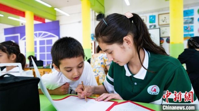 国庆临近,走进江西九江市共青城市妇联儿童活动中心,来自汉族、维吾尔族、仡佬族、撒拉族等20余名小朋友齐聚一堂,在志愿者的指导下,一笔一画描绘着天坛、天安门、五角星等各式图案,共同庆祝即将到来的国庆节。