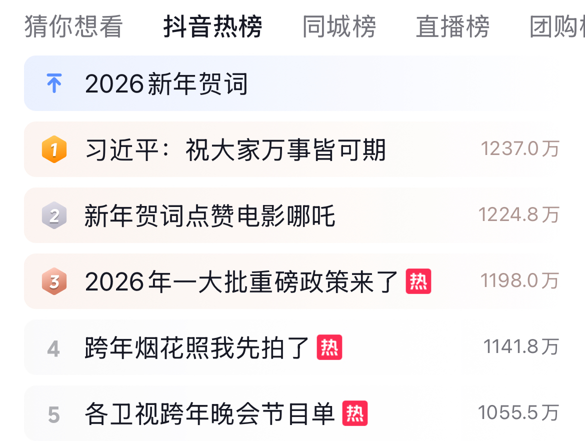 新年前夕,国家主席习近平通过中央广播电视总台和互联网,发表了二〇二六年新年贺词。