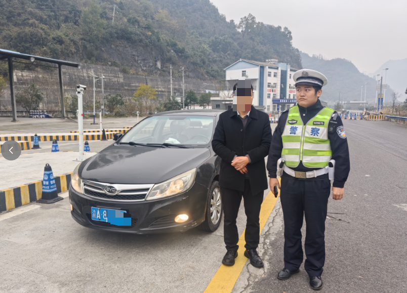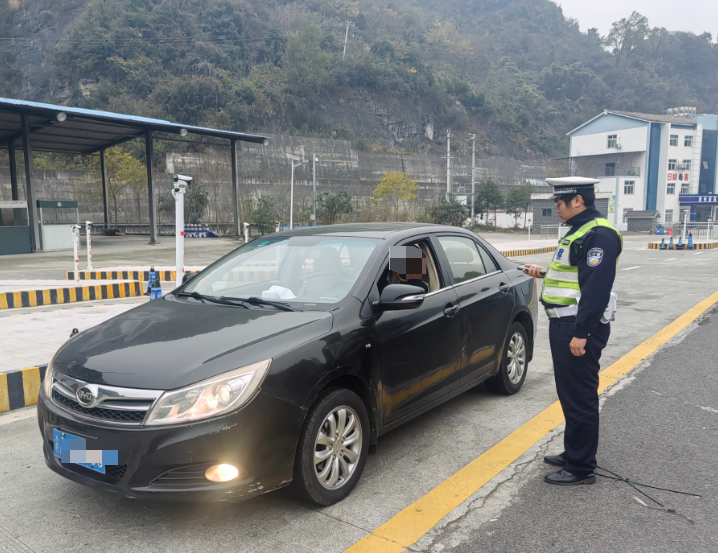 12月6日下午16时34分许,遵义市公安交通管理局高速公路交通警察六大队三中队民警,在G69银百高速大磏省际执法站开展例行检查。一辆车牌号为渝A85***的黑色轿车驶入检查区,民警在核查中发现该车辆状态异常。