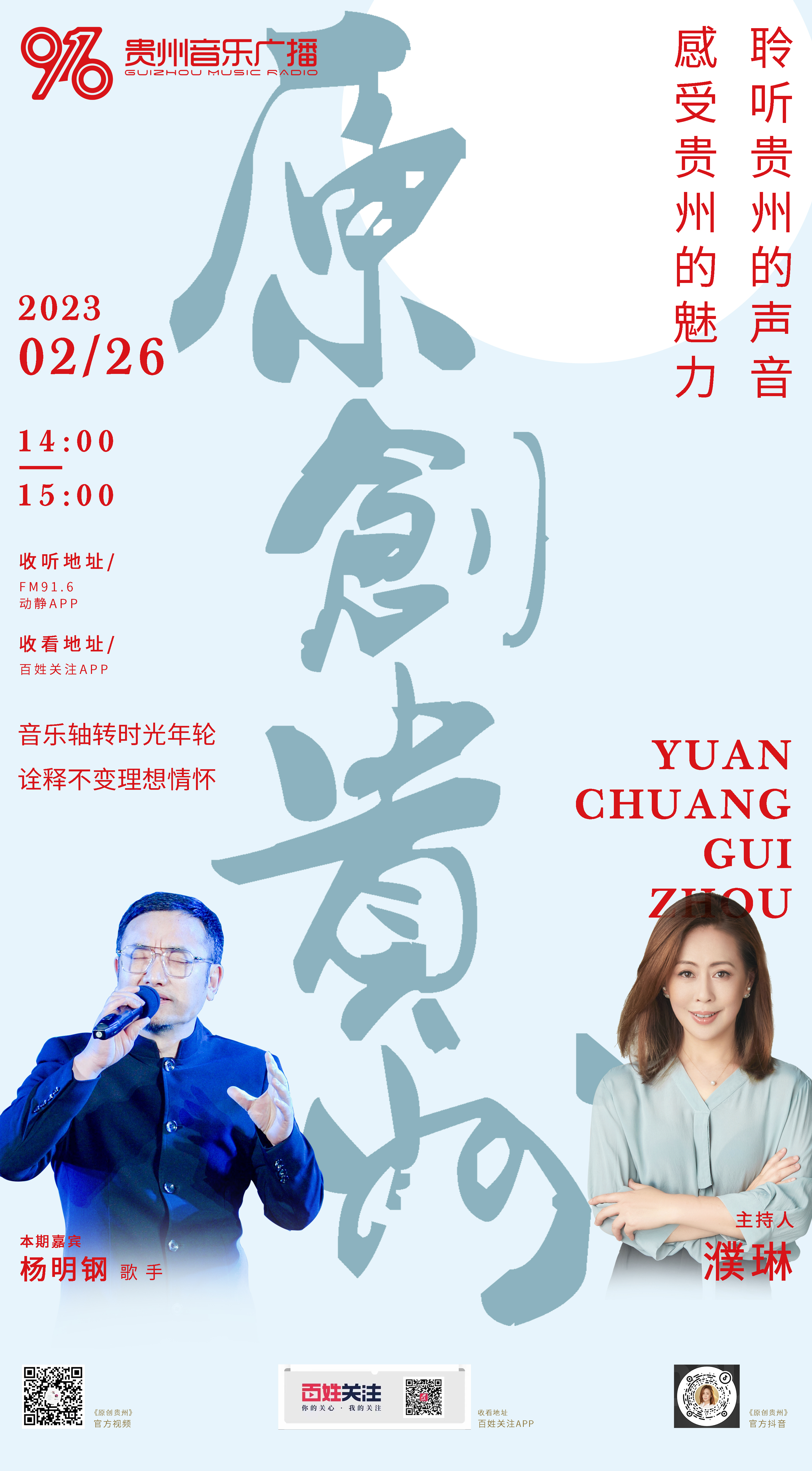 FM91.6贵州音乐广播2月26日14:00,歌手杨明钢走进《原创贵州·对话》,与您讲述音乐轴转时光年轮里,他不变的理想情怀。