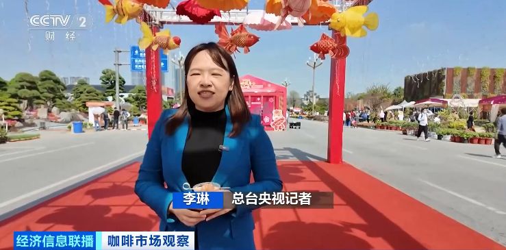 总台央视记者 李琳:佛山的迎春花市里,也飘起了缕缕咖啡香,一些摊位上支起了咖啡机,商家们也琢磨着新花样,像我手上这杯咖啡,就是将本地过年必备的和咖啡相结合的产品。