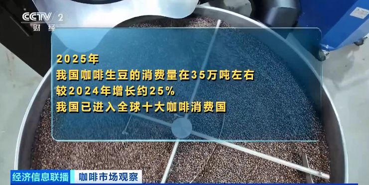 数据显示,2025年,我国咖啡生豆的消费量在35万吨左右,较2024年增长约25%,我国已进入全球十大咖啡消费国。