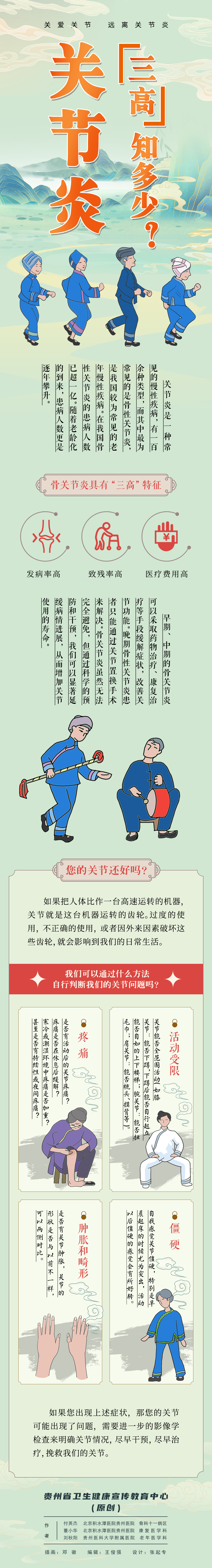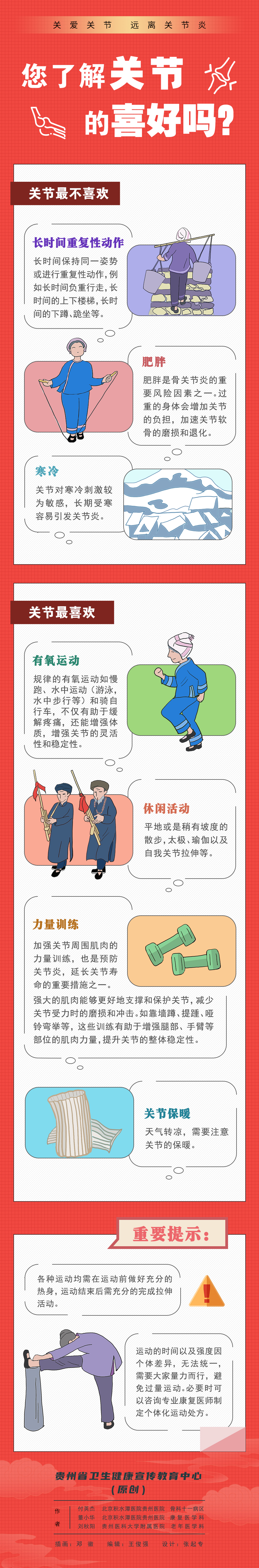 今天(10月12日)是第28个“世界关节炎日”。动静记者从贵州省卫生健康宣传教育中心了解到,关节炎被称为头号致残性疾病,其中,膝关节是人体最大的负重关节,这么重要的部位,你了解关节的“喜好”吗?怎么预防关节“三高”?花三分钟看完吧↓