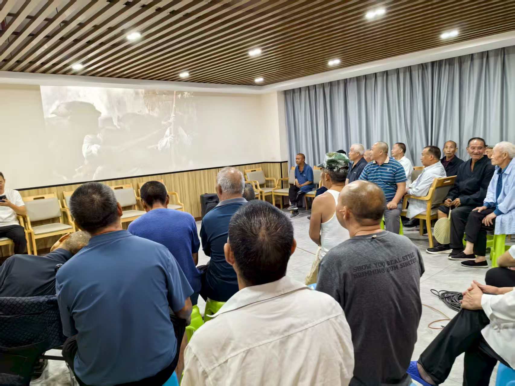 8月12日傍晚,在桐梓县西门颐康养中心举办了一场以“观影传情,厚植爱国情怀”为主题的“观看一场电影”活动,邀请50多名残疾人朋友现场观看电影《双山阻击战》,通过光影艺术的独特魅力,生动展现国家的辉煌历史和英雄人物的伟大事迹,影片中,英雄人物为国家命运赴汤蹈火的革命情怀,坚不可摧的理想信念和对国家的无限忠诚,让现场观众热血沸腾,激发了大家的爱国热情。