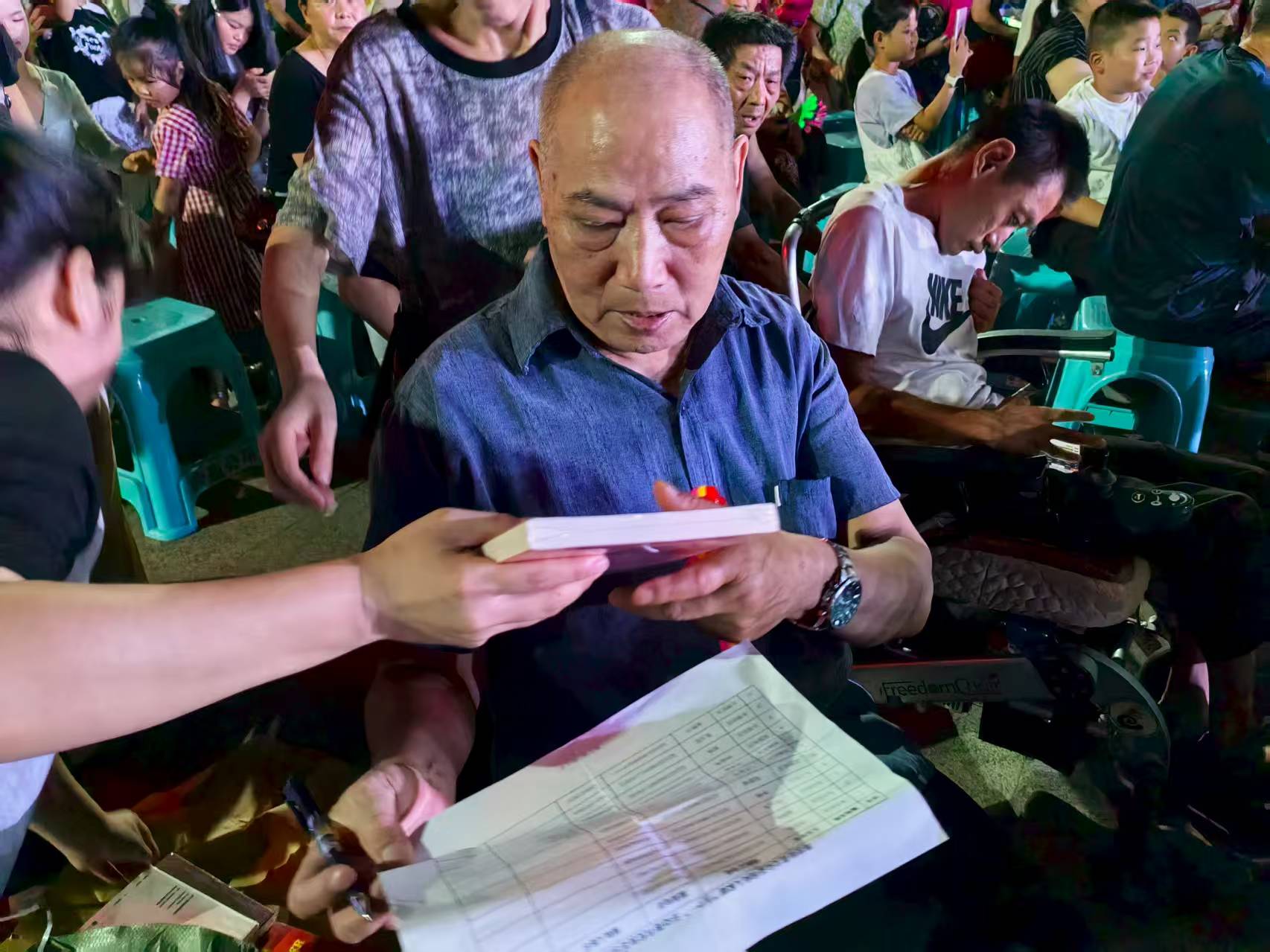 当晚的“阅读一本书”活动同样亮点十足。主办方精心挑选了29册图书,分发给残疾人朋友,构建起一套科学合理的梯度化阅读体系。文学励志类书籍中,《麦田里的守望者》《我与地坛》等经典之作,如同一束束温暖而明亮的光,能够唤醒残疾人内心深处的生命力量,让他们在文学的海洋中找到共鸣与慰藉;健康管理类书籍则聚焦实用科普知识,像《高血压防治知识手册》《中医脏腑养生操》《脑卒中防治手册》,为残疾人及其家庭提供了实用的健康指导。此外,还有适配老年群体的《八段锦》《二十四式太极拳》图文指南,处处彰显着人文关怀。这些书籍兼顾思想深度与实用价值,宛如一把把钥匙,为残疾人家庭打开了通往丰富精神世界的大门。