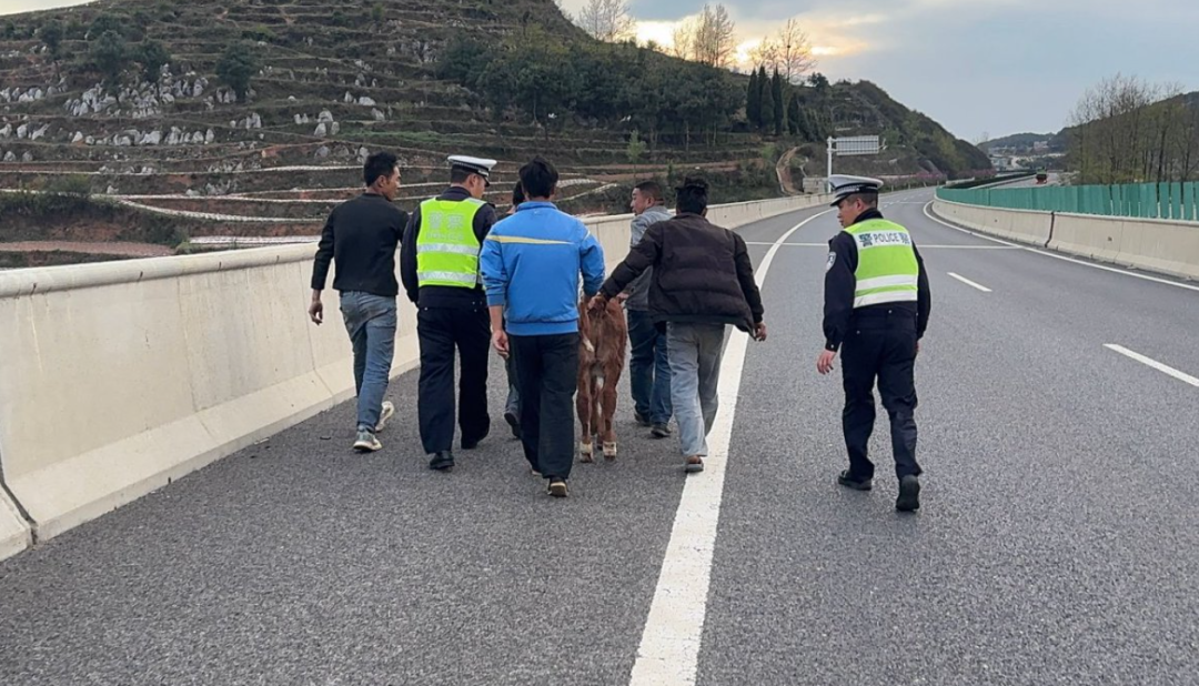 小牛闯入高速险酿大祸,高速交警快速处置除隐患