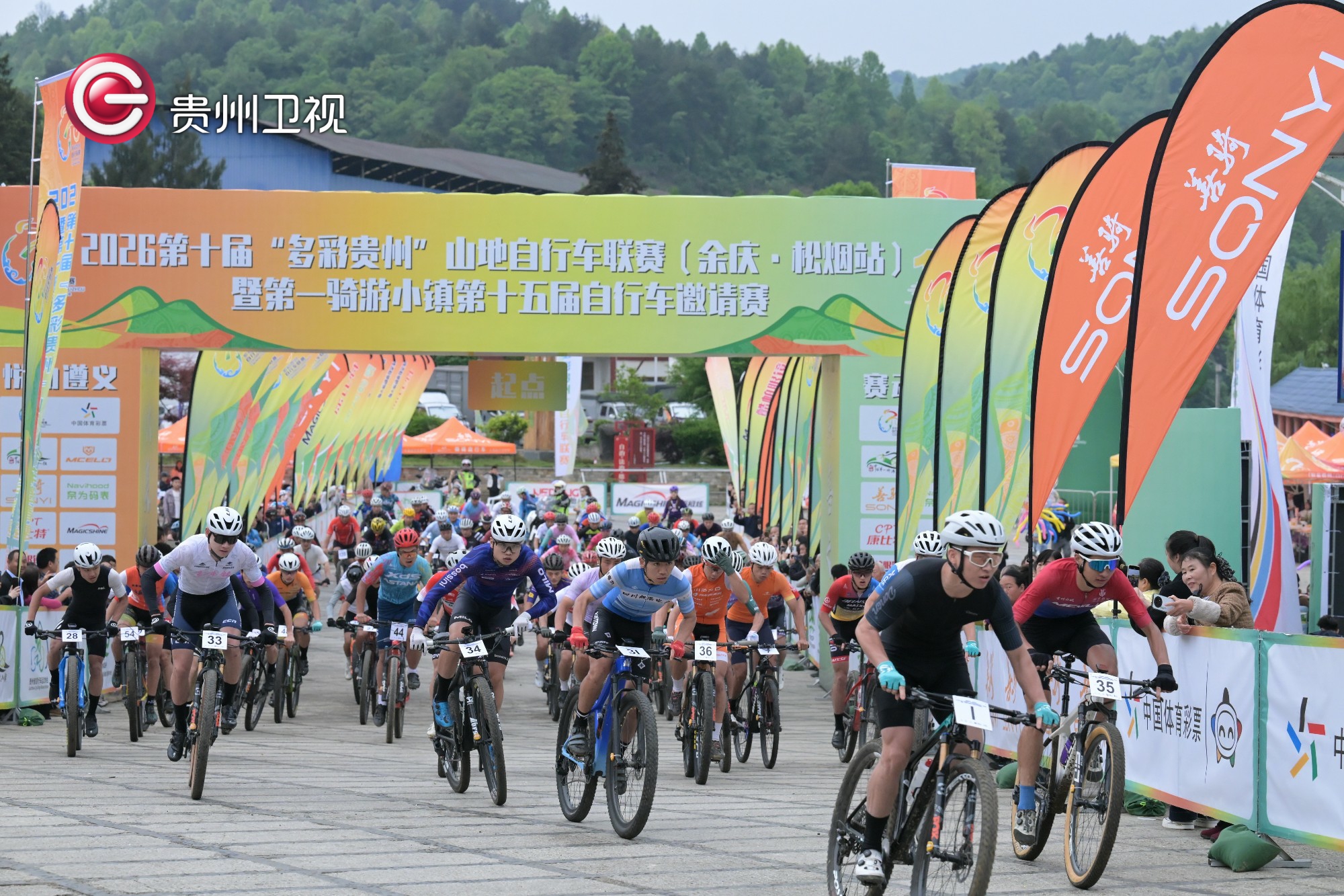 4月26日,2026第十届“多彩贵州”自行车联赛(余庆·松烟站)在余庆县松烟镇二龙茶山园鸣枪开赛,来自各地的800余名骑行爱好者齐聚茶山,在赛道上奋力骑行、展开角逐。