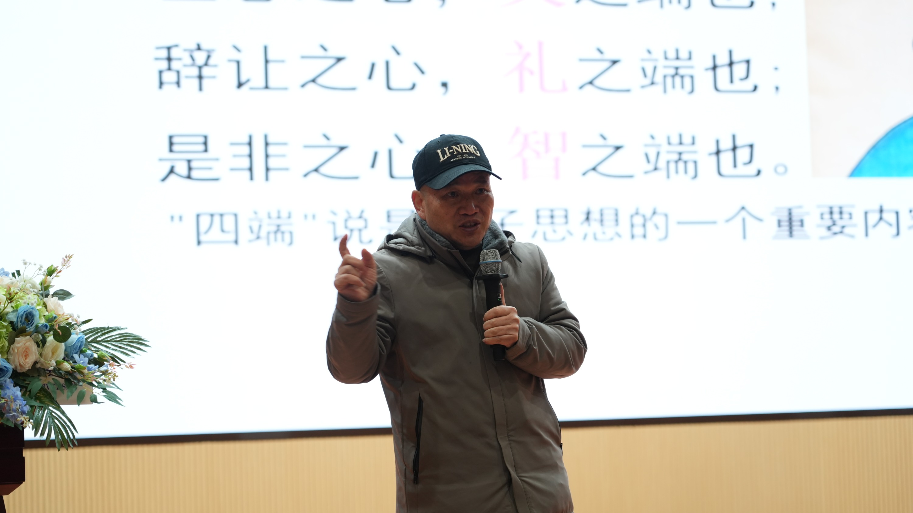 为进一步搭建家校沟通桥梁,提升家校协同育人实效,1月22日,湖南师范大学附属贵安学校小学部特邀全国知名德育专家、贵州省教育厅教育系统道德大讲堂“德师”、贵州省教育厅民族教育“双百工程”建设高中项目服务机构负责人、贵州师范学院特聘客座教授安斯寿,在学校报告厅开展以“中国优秀传统文化教育思想与家庭教育”为主题的专题讲座。全体小学部教师及学生家长齐聚现场,携手共话家校协同育人新路径。