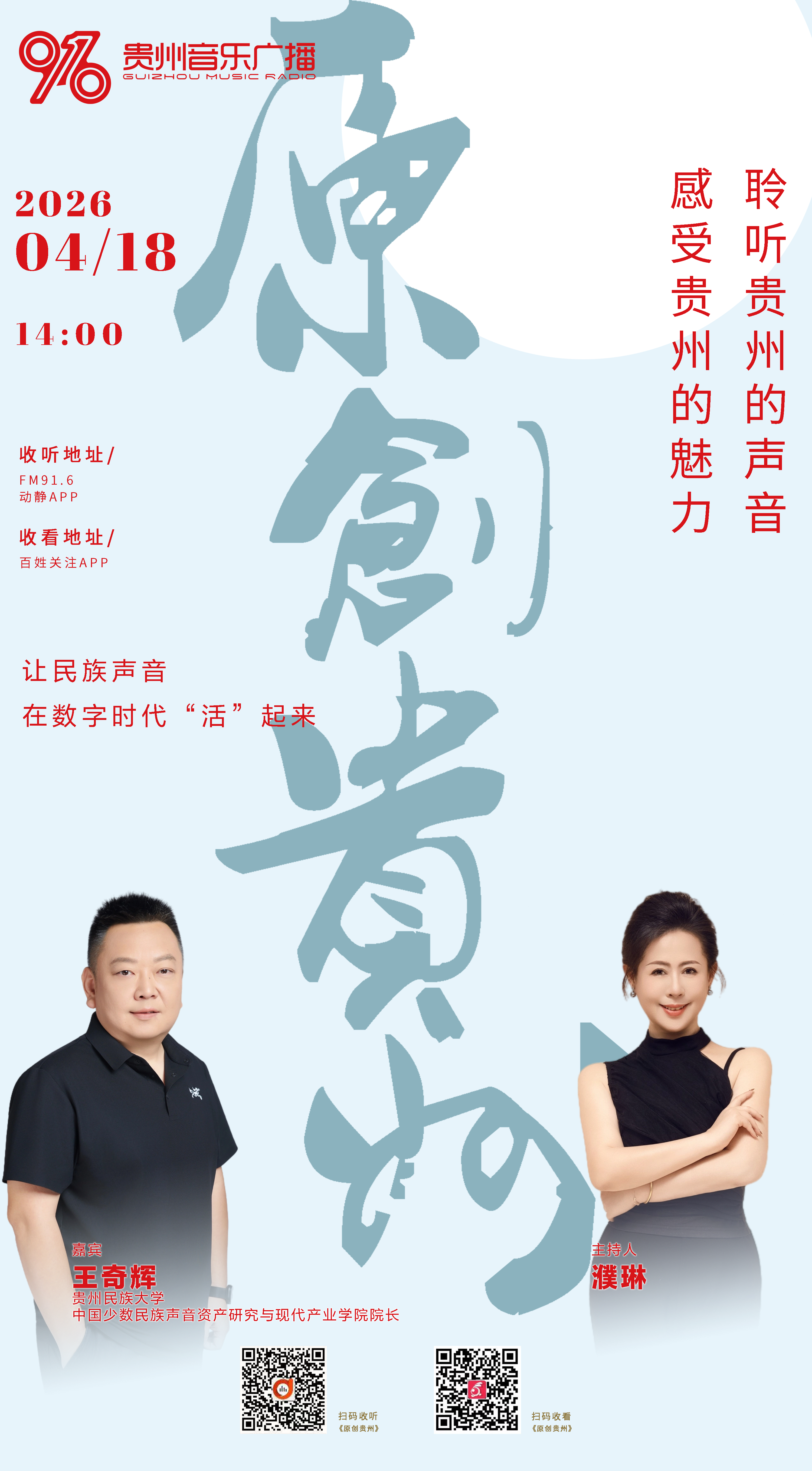 4月18日,FM91.6贵州音乐广播14:00《原创贵州·对话》贵州民族大学中国少数民族声音资产研究与现代产业学院院长王奇辉,让民族声音在数字时代“活”起来。