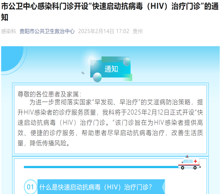 荣誉的背后,是贵阳市公共卫生救治中心长期在HIV防治领域的深耕与探索。早在2025年2月,该院便率先在贵州省开设“HIV快速启动抗病毒治疗门诊”,践行“早发现、早治疗”的艾滋病防治策略。通过简化就诊流程、建立绿色通道,帮助患者在确诊后尽早启动抗病毒治疗,有效抑制病毒复制、保护免疫功能,显著降低传播风险。这一先行探索为后续成功创建示范中心奠定了坚实基础。
