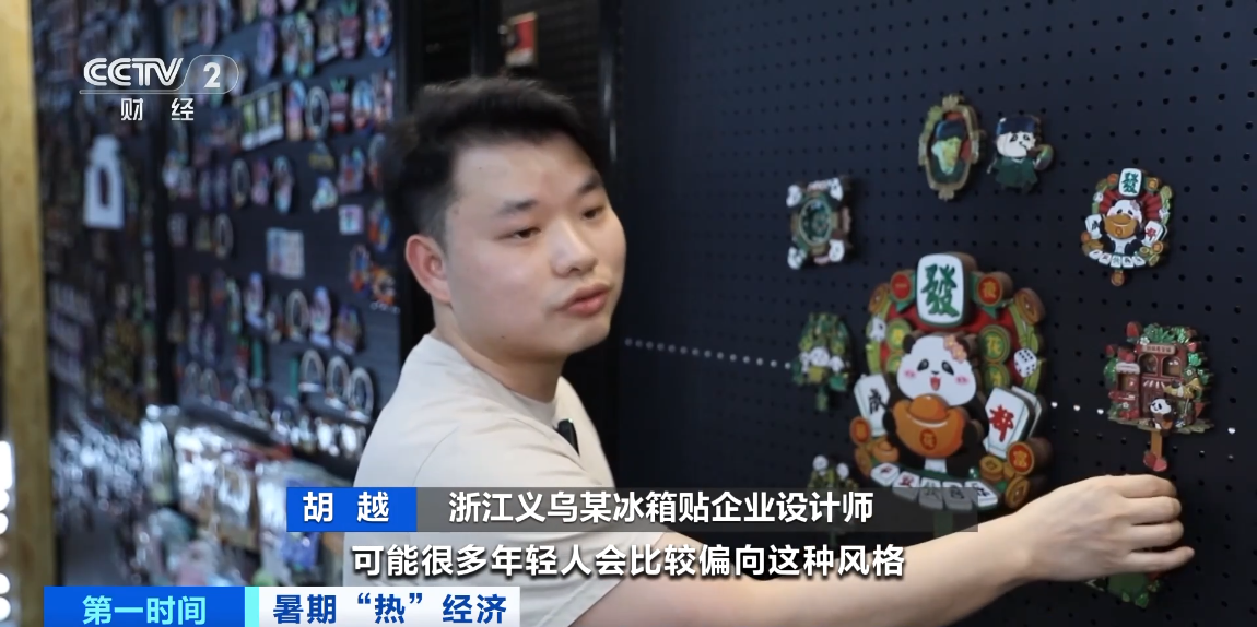 浙江义乌某冰箱贴企业设计师 胡越:可能很多年轻人会偏向这种风格,我觉得冰箱贴从单纯的纪念品往文创产品去发展,会有更多的文化传播价值在里面。