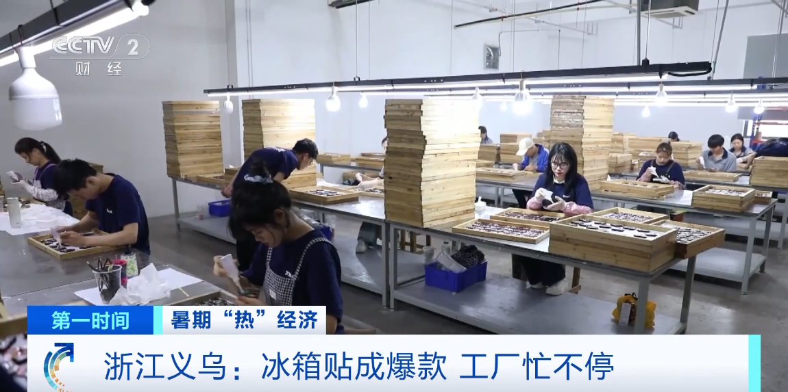 在浙江义乌,当地生产冰箱贴的工厂开启加班加点模式,全力赶制订单以满足市场需求。