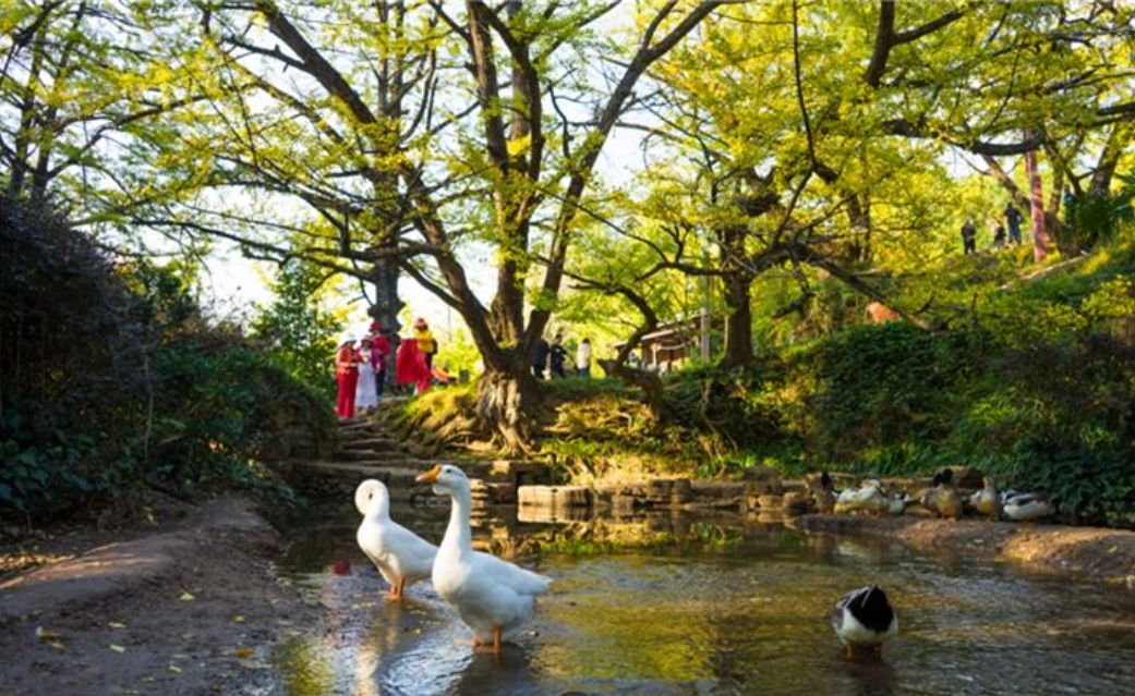 和这片茂密的古银杏林相守相约的是传统的妥乐村庄,是“树根上的村庄”,地上交相缠绕的树根连接着妥乐的家家户户。既有山之秀美,水之灵动,又有小桥流水之古朴,人家之安乐。