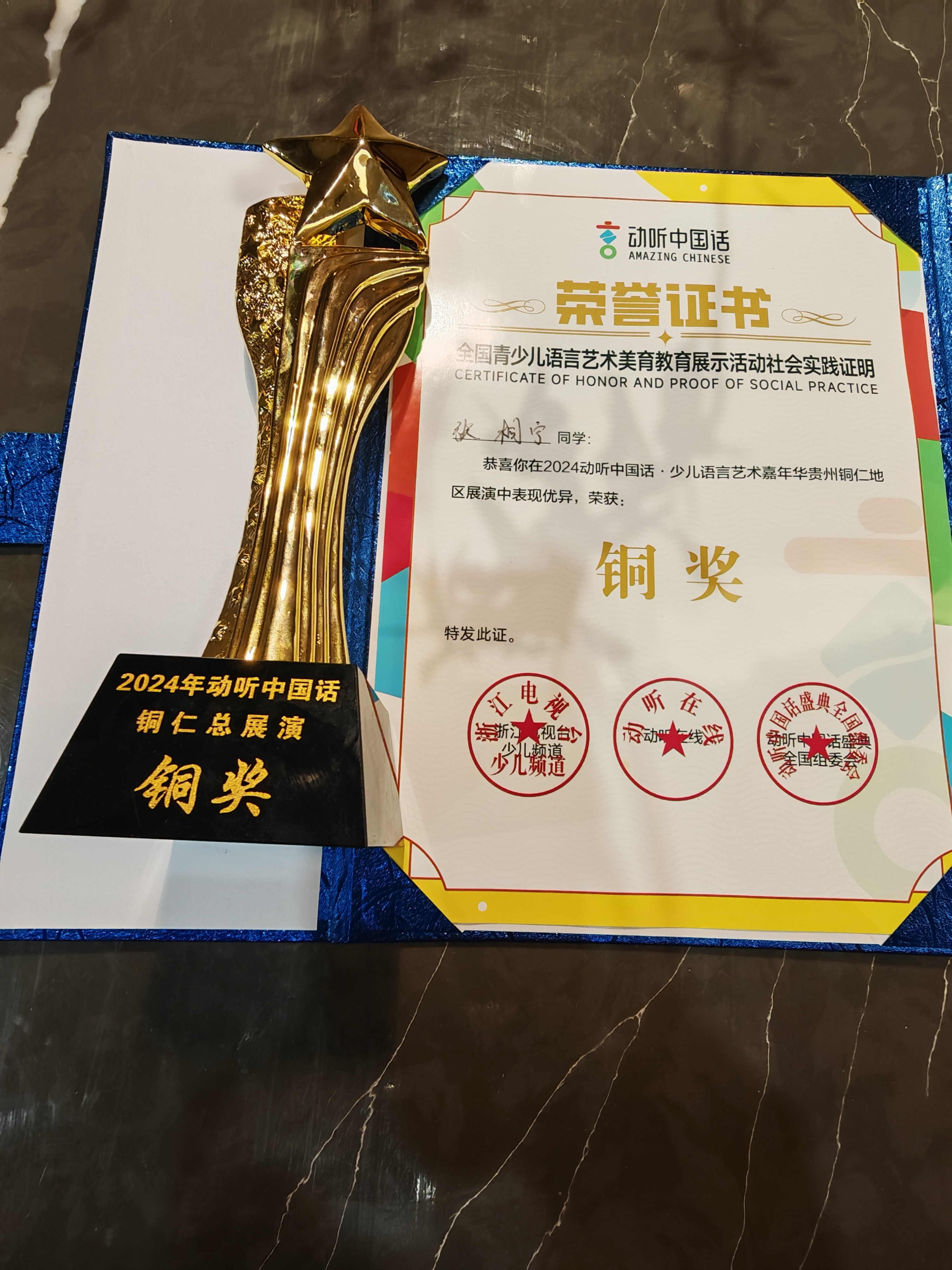 几年的坚持与努力,让张桐宁陆续登上“动听中国话”“曹灿杯”等专业赛事舞台,参与过春晚小主持人选拔,并斩获“故事大王”“非凡之星”等多项荣誉。“每一次参赛都是成长,每一份奖项都是对坚持的肯定。”她这样总结自己的参赛经历。