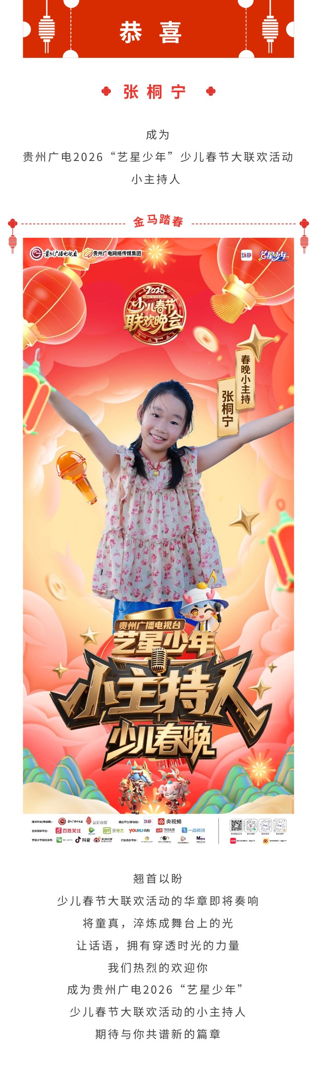 张桐宁 | 贵州广电2026“艺星少年”少儿春节大联欢活动小主持人!
