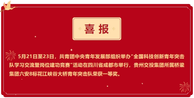 在共青团贵州省委、省国资委团工委的指导下,贵州交投集团推选的花江峡谷大桥青年突击队凭借在桥梁建造领域的前沿技术突破与成果转化实效,从全国83支参赛团队中脱颖而出,荣获竞赛一等奖,充分展现了集团青年技术团队的创新活力与使命担当。