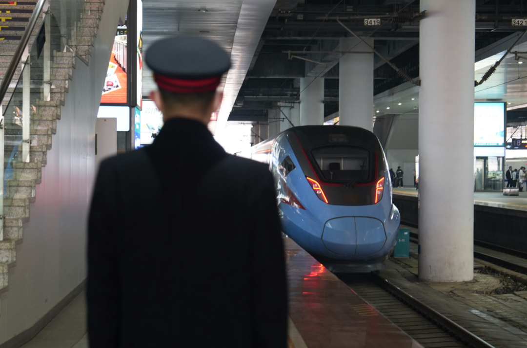 9时43分,检票口开启,工作人员和志愿者分工协作,引导务工人员有序检票乘车。站台上,D1857次列车早已整装待发,乘务人员站在车门口,微笑着引导旅客上车。“麻烦您把大件行李放在车厢连接处的大件行李区。”乘务员们穿梭在车厢过道,主动协助旅客安放大件行李,优化行李架布局,避免行李堆放拥挤。