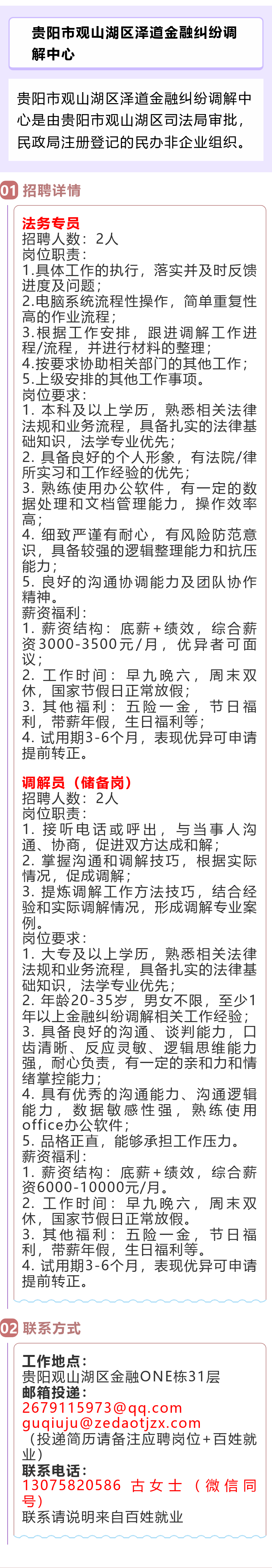 贵阳市观山湖区招聘!月薪可达10000元!五险一金!