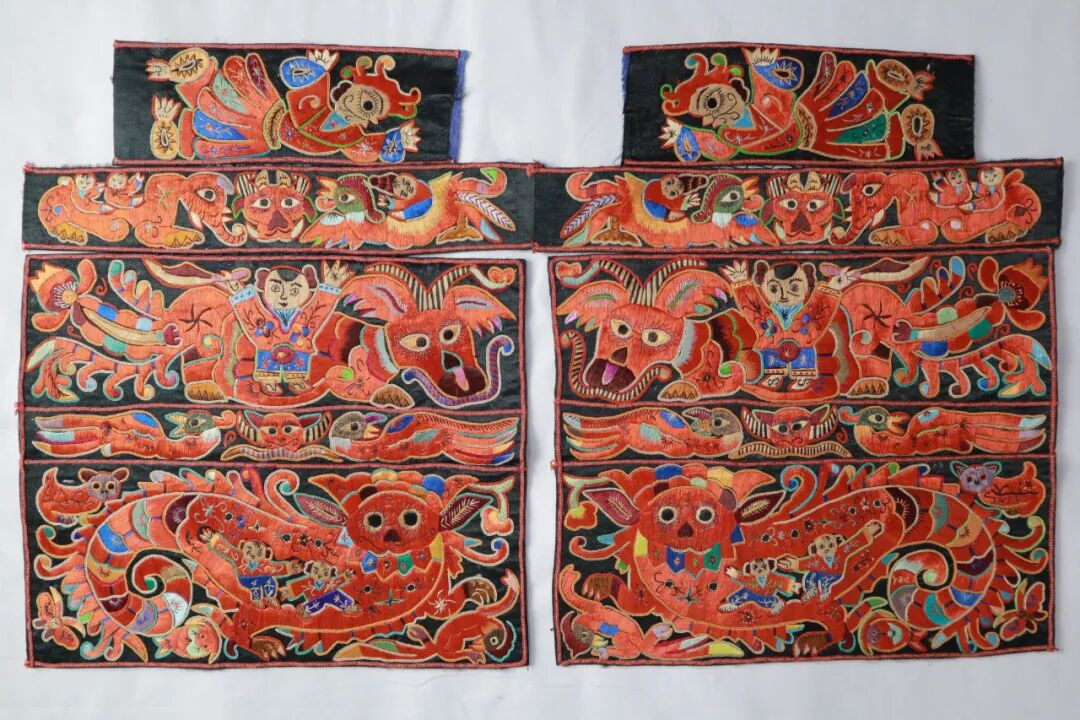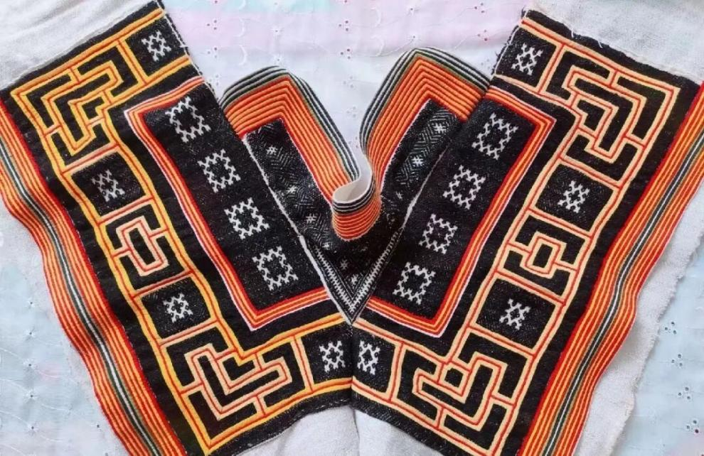 锁绣作为古老的刺绣针法,在部分苗族地区得到了很好的传承和发展,其中在小部分地区将锁绣作为服饰主体纹样的刺绣手法,大部分地区将锁绣作为边缘配花或者用于轮廓勾边。