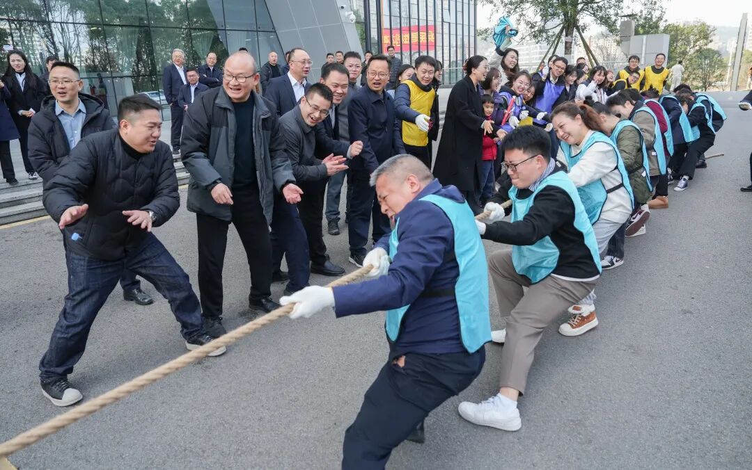 在总部办公楼外的空地上,“拔河比赛”激情上演。各支代表队摩拳擦掌,紧握长绳。哨声响起,队员们重心下压,力贯长绳,口中齐呼号子,两旁加油助威声震天响。每一次拉扯都是力量的比拼,每一次僵持都是意志的较量。活动不仅赛出了水平,更充分展现了贵州交投人团结协作、奋勇争先的精神风貌。